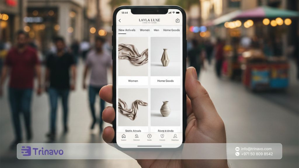 أثبتت الإحصائيات أن مستخدمي التطبيقات في الأردن يقضون وقتاً أطول بـ 3 أضعاف في تصفح المنتجات مقارنة بمواقع الويب، ولذلك تتيح لك ترينافو ميزة انشاء تطبيق متجر الكتروني مجاناً.